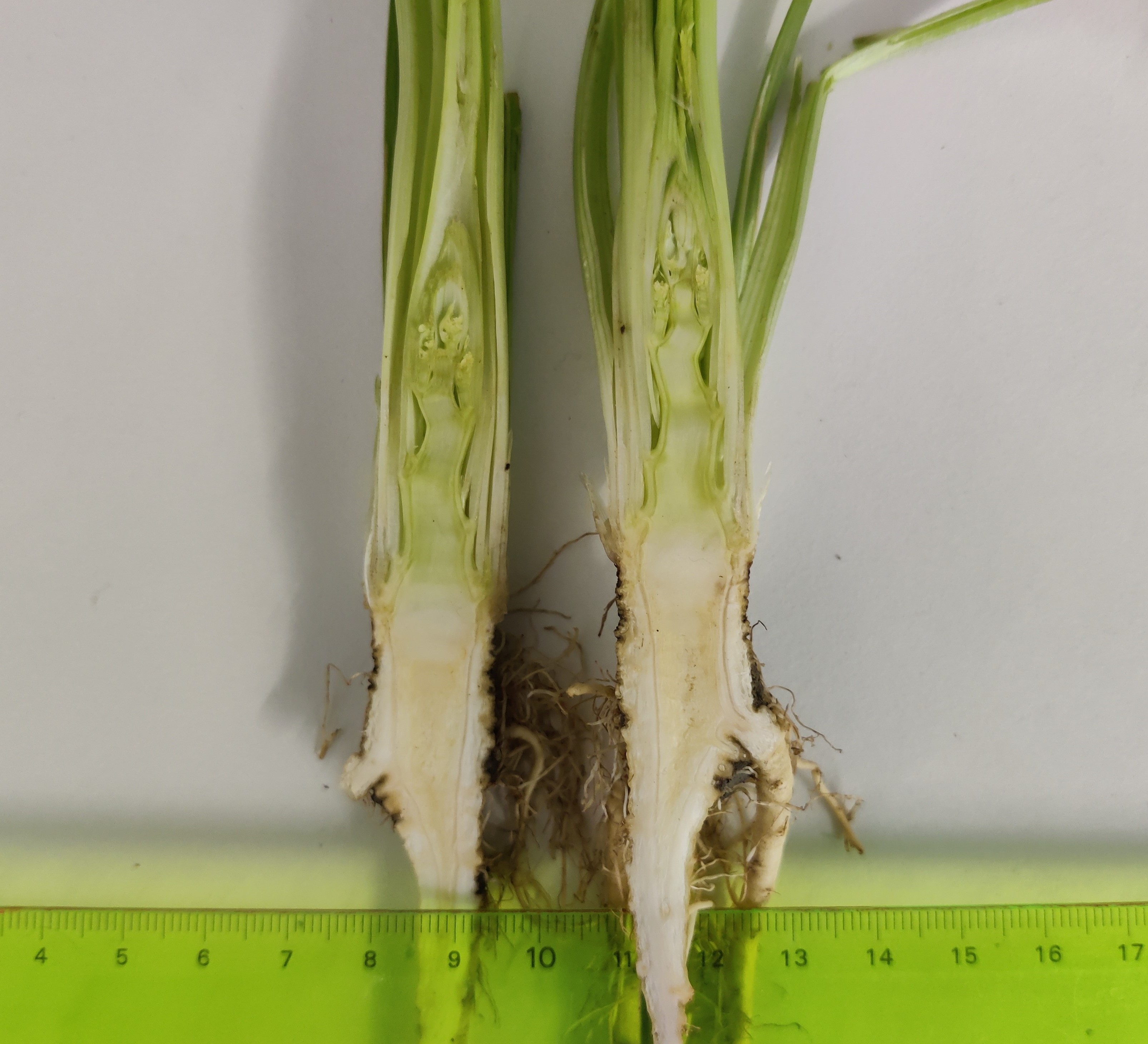Lehtiruusuketta avaamalla näkyy kuminan taimissa jo kukinnon aihe.