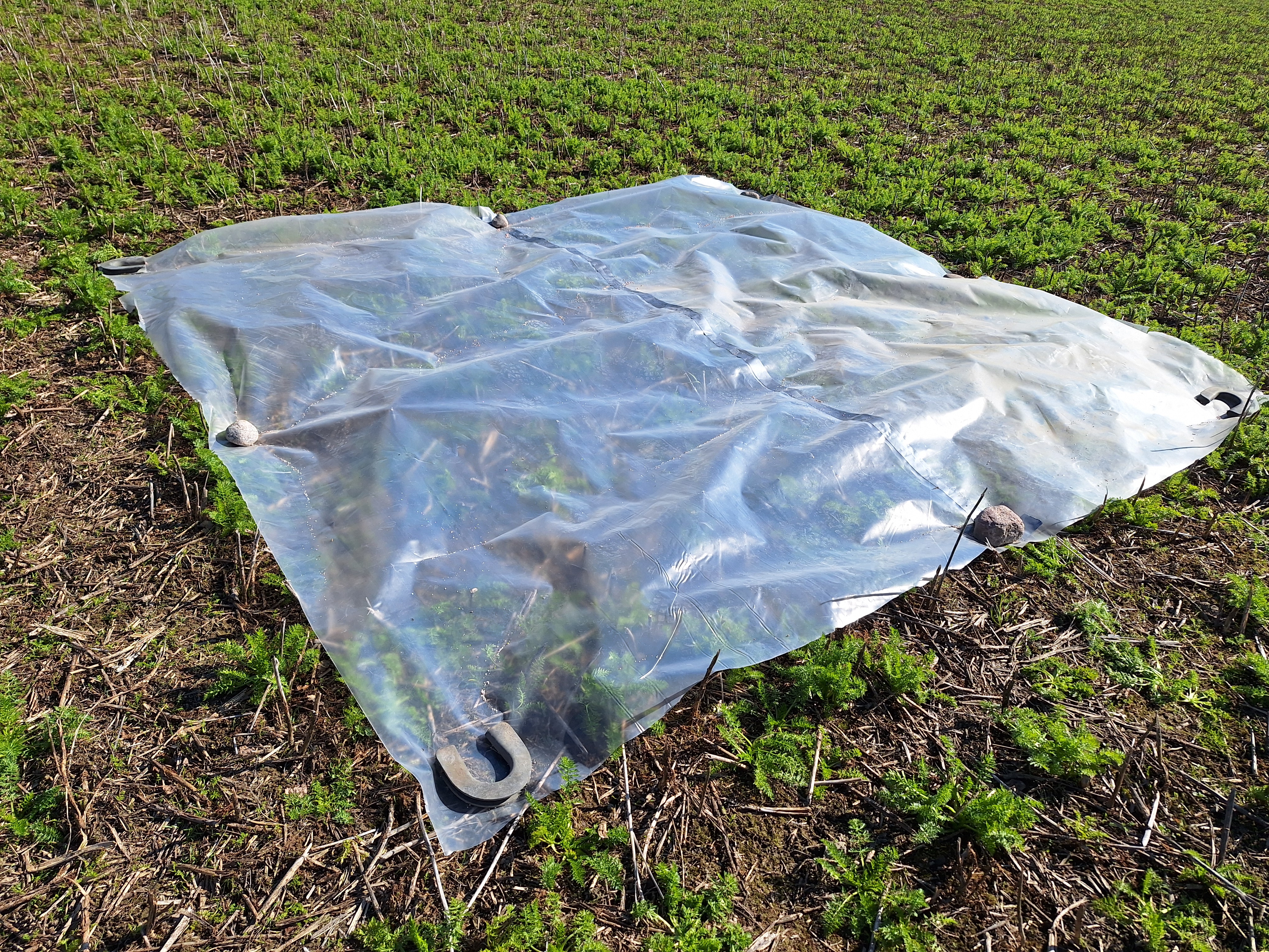 Nollaruudun tekoon tarvitset yhtenäisen vähintään noin 3x3m pressun/muovin ja muutaman merkkikepin jotta myöhemmin muistat nollaruudun sijainnin. Ennen lannoitteen levittämistä levitä pressu/muovi otolliseen kohtaan pellolla. Älä kuitenkaan laita peitettä päisteeseen, vaan keskemmälle peltoa. Laita peitteen reunoille painoja jotta se pysyy paikallaan, eikä lähde esimerkiksi tuulen matkaan.