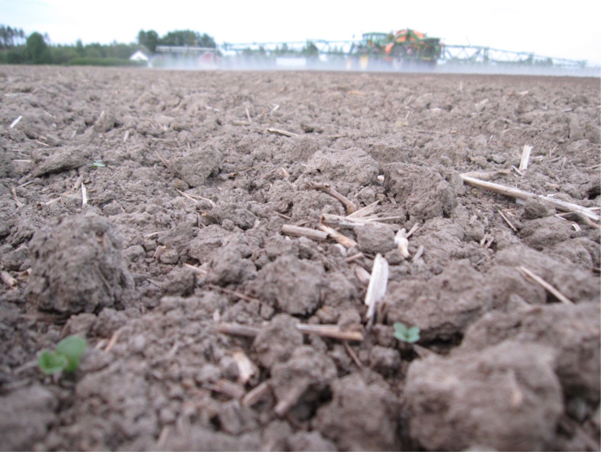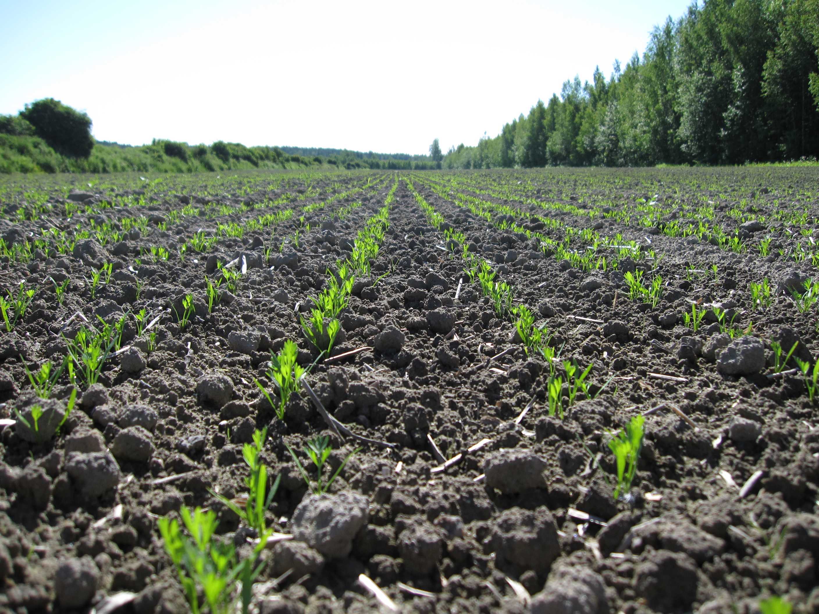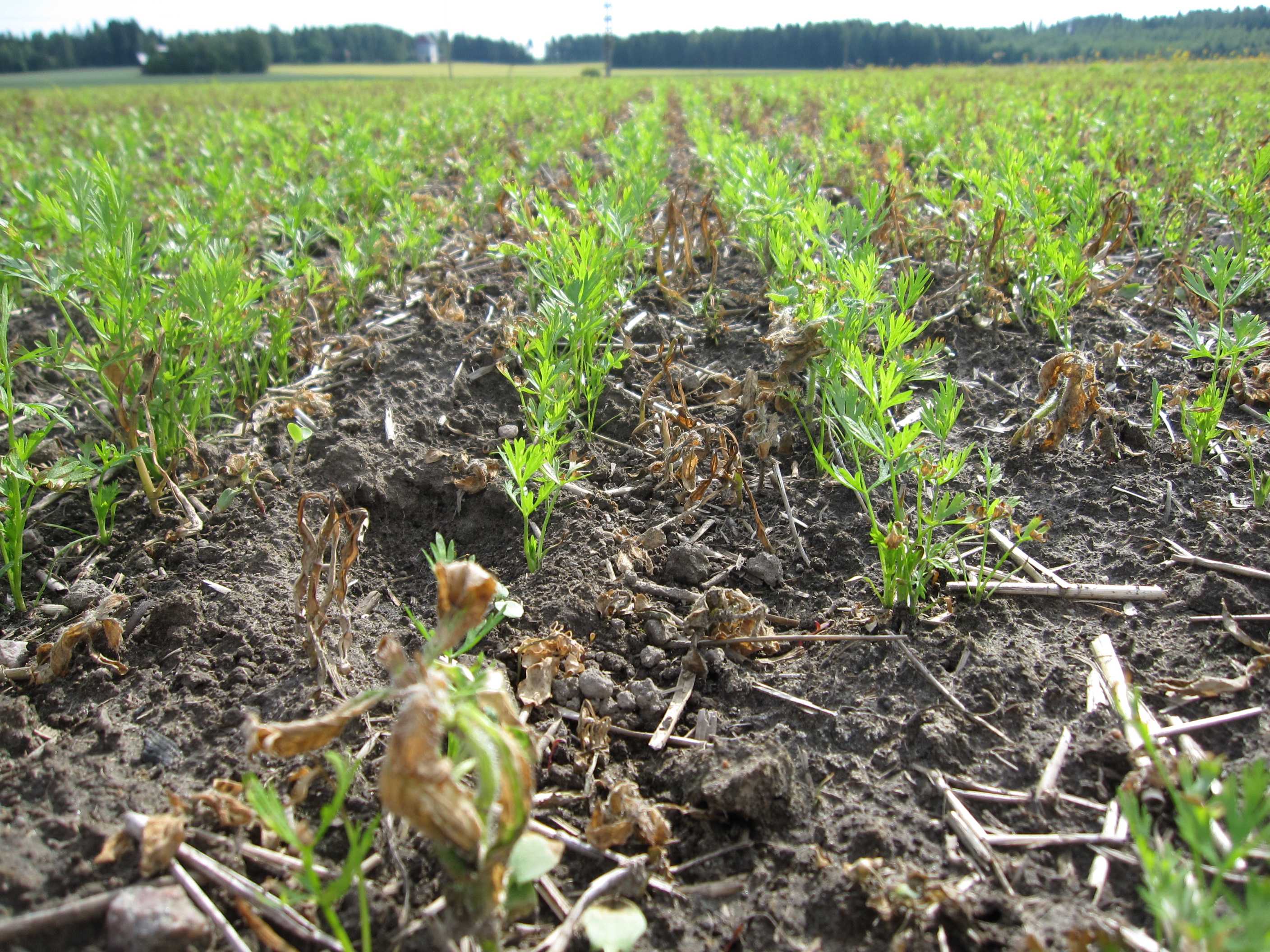 Kuva 1: Ensimmäisen ruiskutuksen otollisin hetki. Kumina ei ole vielä taimella mutta pienet rikat ovat sirkkalehtivaiheesaan.