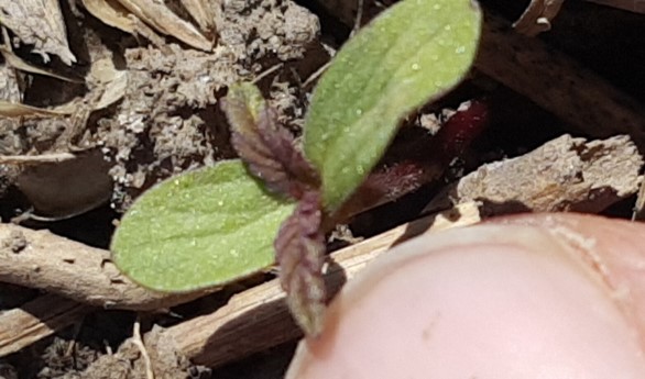 Hampun taimi itää nopeasti kylvön jälkeen. Vielä kesäkuun alun kylvöstä se kokemuksen perusteella valmistuu puintikuntoon syyskuun lopulla. Kuva keväältä 2020. Viime viikolla kylvetyillä hamppulohkoilla taimien odotetaan nousevan maasta lähipäivinä