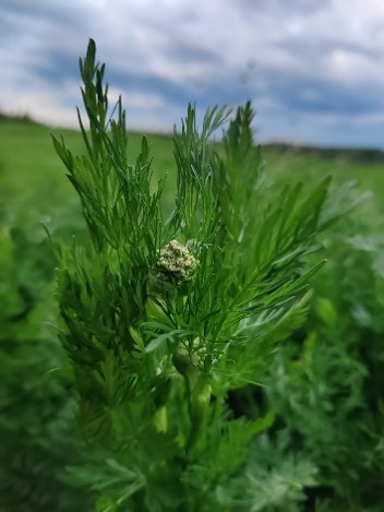 Viikonloppua kohden lämpenevä sää tekee ihmeitä. Kukinnot kehittyvät, kukkavarsi kasvaa ja kuminapellon väristys alkaa muuttua valkoisemmaksi kukintojen avautuessa.